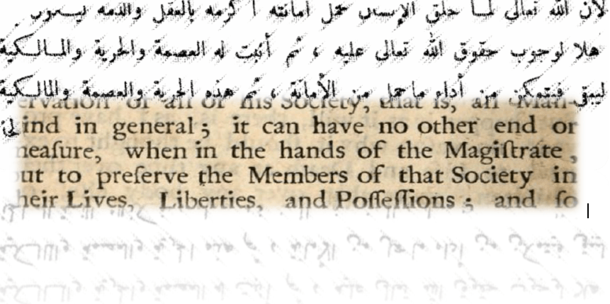 Hier wäre es wichtig zu untersuchen, ob und in welcher Form das islamische Recht die Naturrechtskonzeption von John Locke beeinflusst hat.[3] Zu Lebzeiten John Lockes hatte das Osmanische Reich seine größte Ausdehnung erreicht und galt weiterhin als eines der mächtigsten Reiche der Welt. Den europäischen Intellektuellen war die religiöse Toleranz, wie sie im osmanischen Reich gegenüber fast allen Religionen praktiziert wurde, bekannt. John Locke selbst aber auch Aufklärer wie Voltaire verwiesen immer wieder auf die Lage der nichtmuslimischen Minderheiten im Osmanischen Reich und stellten diese als vorbildlich für das Abendland dar. Ferner war John Locke ein Schüler und Freund von Edward Pococke, dem ersten Lehrstuhlinhaber der Arabistik Professur in Oxford, der Jahre lang in Aleppo gelebt und die religiöse Toleranz im Osmanischen Reich hautnah erlebt und auch davon berichtet hat. Er hatte einen großen Einfluss auf John Locke. Darüber hinaus wurde der Islam im 17. und 18. Jahrhundert ohnehin als eine Religion und Kultur auf Augenhöhe akzeptiert, von dem man bereit war sich inspirieren zu lassen. In dieser Phase der europäischen Geschichte wurden Geschichtswerke, sowie philosophische, theologische oder literarische Werke aus dem Arabischen und Türkischen in die europäischen Sprachen übersetzt, zeitgenössische kulturelle und politische Entwicklungen im Osmanischen Reich aufmerksam beobachtet. Alexander Bevilacqua beschreibt diese Phase zwischen 1650-1750 als „The Republic of Arabic Letters“, in der eine intensivere und sachlichere Auseinandersetzung mit der zeitgenössischen und historischen islamischen Welt erfolgt habe.